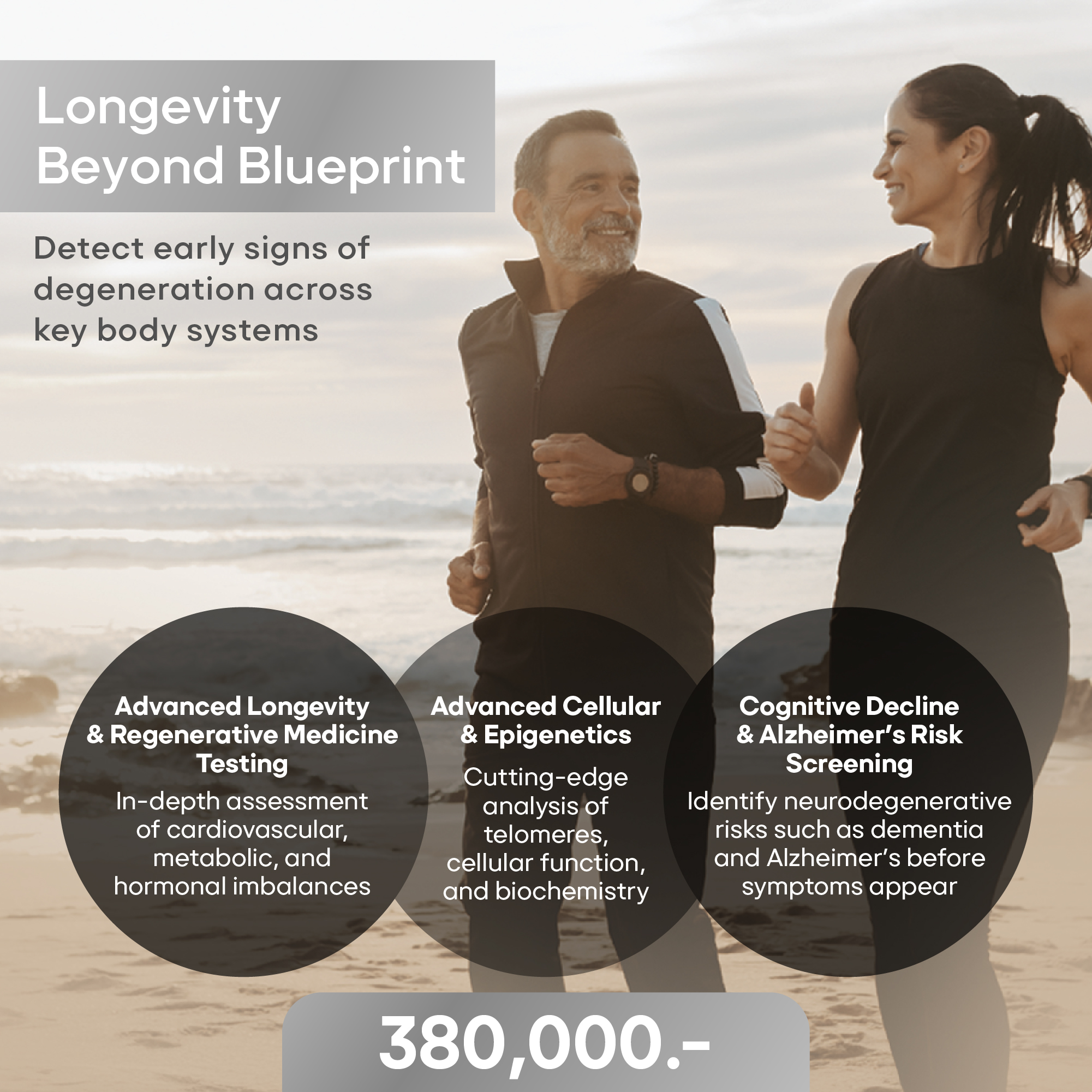 Embrace the future of longevity with cutting-edge diagnostics and personalized wellness that target early signs of aging from cardiovascular, metabolic, and hormonal imbalances to cognitive decline and Alzheimer’s risk through deep analysis of key systems like telomere length, cellular function, biochemical balance, and epigenetics to reveal your true aging rate, empowering you to stay vital and prevent age-related diseases.